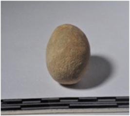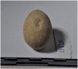 | Description / विवरण | A terracotta sling ball round in shape of smooth surface |