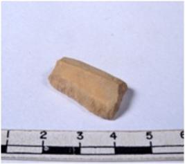 | Description / विवरण | A fragment of a rectangular shaped chert blade showing dorsal sides with sharp edges having smooth surface and triangular section. |