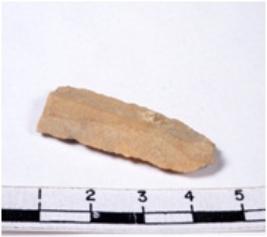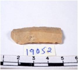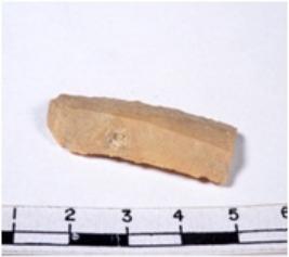 | Description / विवरण | A fragment of a rectangular shaped chert blade showing dorsal sides with sharp edges having smooth surface and triangular section. |