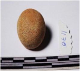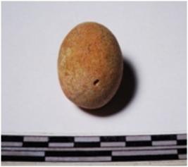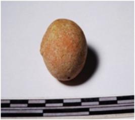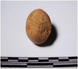 | Description / विवरण | A terracotta sling ball round in shape of smooth surface. |