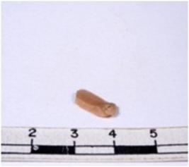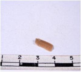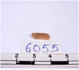 | Description / विवरण | A fragment of a rectangular shaped chert blade showing dorsal sides with sharp edges having smooth surface and triangular section. |
