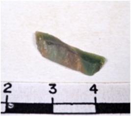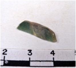 | Description / विवरण | A fragment of a rectangular shaped chalcedony lunate, showing pointed on upper end having smooth surface and uneven section. |