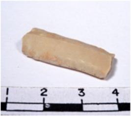 | Description / विवरण | A fragment of a rectangular shaped chert blade showing dorsal sides with sharp cutting having smooth surface and triangular in section. |