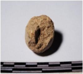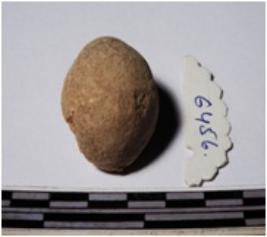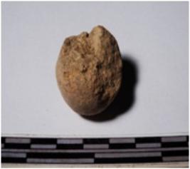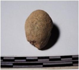 | Description / विवरण | A fragment of a terracotta sling ball globular in shape of smooth surface. |