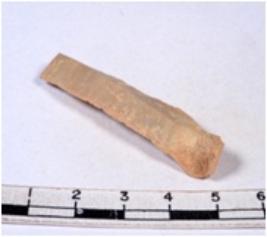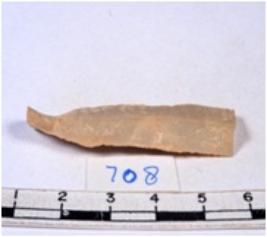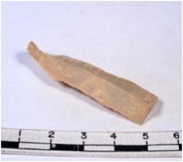 | Description / विवरण | A fragment of a rectangular shaped chert blade showing dorsal sides with sharp cutting edges having smooth surface and triangular section. |