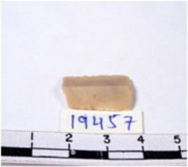 | Description / विवरण | A fragment of a rectangular shaped chert blade showing dorsal sides with sharp cutting edges having smooth surface and triangular section. |