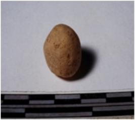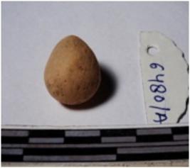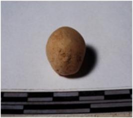 | Description / विवरण | A terracotta sling ball round in shape of smooth surface. |