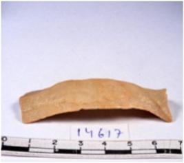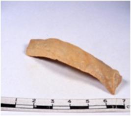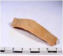 | Description / विवरण | A fragment of a rectangular shaped chert blade showing dorsal sides with sharp cutting edges having smooth surface and triangular section. |