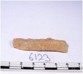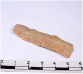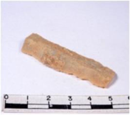 | Description / विवरण | A fragment of a rectangular shaped chert blade showing dorsal sides with sharp edges having smooth surface and triangular section. |