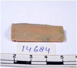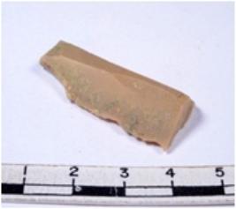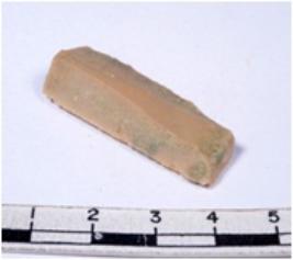 | Description / विवरण | A fragment of a rectangular shaped chert blade showing dorsal sides with sharp edges having smooth surface and triangular section. |