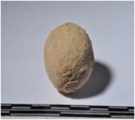 | Description / विवरण | A terracotta round in shaped sling ball of smooth surface. |