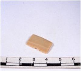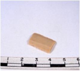 | Description / विवरण | A fragment of a rectangular shaped chert blade showing dorsal sides with sharp cutting edges having smooth surface and triangular section. |