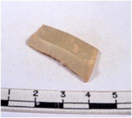 | Description / विवरण | A fragment of a rectangular shaped chert blade showing sides with sharp cutting edges having smooth surface and uneven section. |