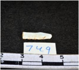 | Description / विवरण | A fragment of a rectangular shaped chalcedony blade showing dorsal sides with sharp edges having smooth surface and triangular section. |