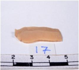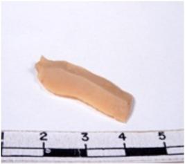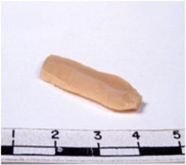 | Description / विवरण | A fragment of a rectangular shaped chert blade showing dorsal sides with sharp cutting edges having smooth surface and triangular section. |