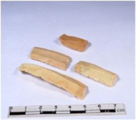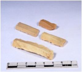| Description / विवरण | A fragment of a rectangular shaped chert blade showing dorsal sides with sharp edges having smooth surface and triangular section. |