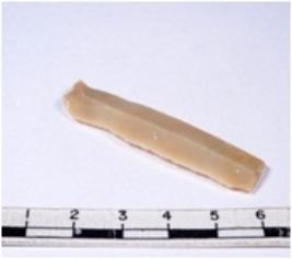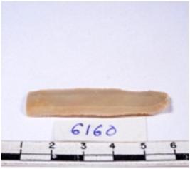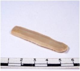 | Description / विवरण | A fragment of a rectangular shaped chert blade showing dorsal sides with sharp cutting edges having smooth surface and triangular section. |