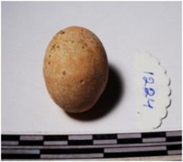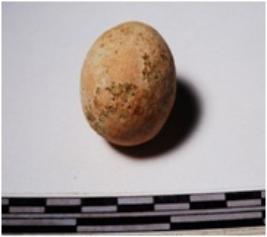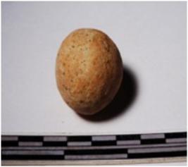 | Description / विवरण | A terracotta sling ball round in shape of smooth surface. |