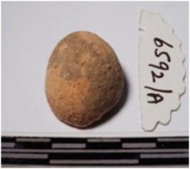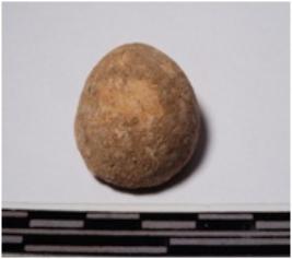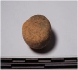 | Description / विवरण | A fragment of a terracotta sling ball round in shape of smooth surface. |