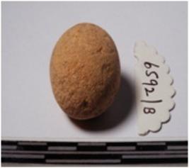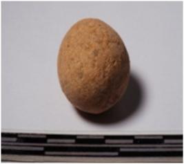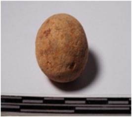 | Description / विवरण | A terracotta sling ball round in shape of smooth surface. |