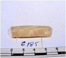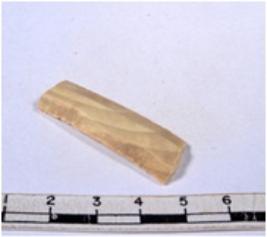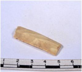 | Description / विवरण | A fragment of a rectangular shaped chert blade showing dorsal sides with sharp edges having smooth surface and triangular section. |