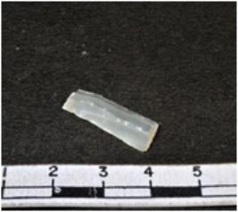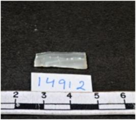 | Description / विवरण | A fragment of a rectangular shaped chalcedony blade showing dorsal sides with sharp edges having smooth surface and triangular section. |