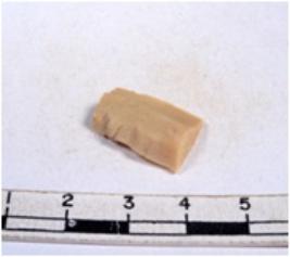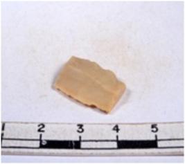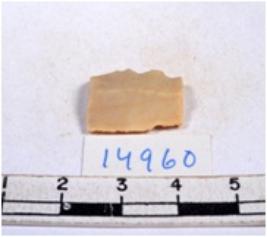 | Description / विवरण | A fragment of a rectangular shaped chert blade showing dorsal sides with sharp cutting edges having smooth surface and triangular section. |
