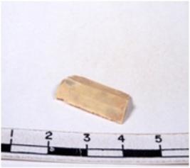 | Description / विवरण | A fragment of a rectangular shaped chert blade showing parallel sides with sharp edges having smooth surface and uneven section. |