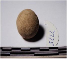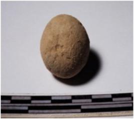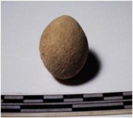 | Description / विवरण | A terracotta sling ball round in shape of smooth surface. |