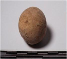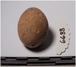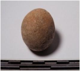 | Description / विवरण | A terracotta round in shaped sling ball slightly broken of smooth surface. |