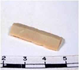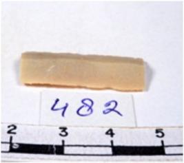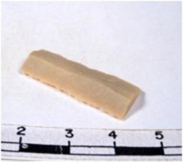 | Description / विवरण | A fragment of a rectangular shaped chert blade showing dorsal sides with sharp edges having smooth surface and triangular section. |