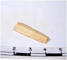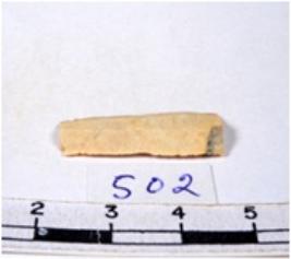 | Description / विवरण | A fragment of a rectangular shaped chert blade showing parallel sides with sharp edges having smooth surface and uneven section. |