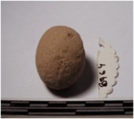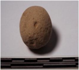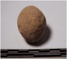| Description / विवरण | A terracotta round in shaped sling ball, circular in section of smooth surface. |