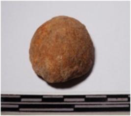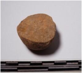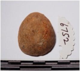 | Description / विवरण | A fragment of a terracotta sling ball round in shape of smooth surface. |