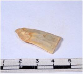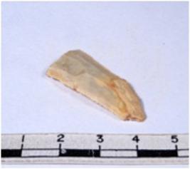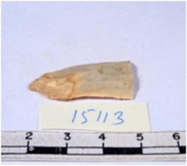 | Description / विवरण | A fragment of a rectangular shaped chert blade showing dorsal sides with sharp edges having smooth surface and triangular section. |