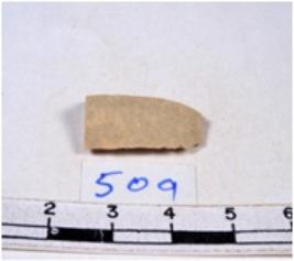 | Description / विवरण | A fragment of a rectangular shaped chert blade showing dorsal sides with sharp edges having smooth surface and triangular section. |