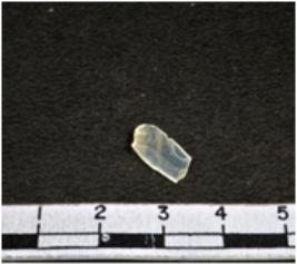 | Description / विवरण | A fragment of a rectangular shaped chalcedony blade showing dorsal sides with sharp edges having smooth surface and triangular section. |