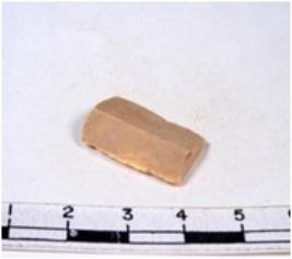 | Description / विवरण | A fragment of a rectangular shaped chert blade showing dorsal sides with sharp edges having smooth surface and triangular section. |