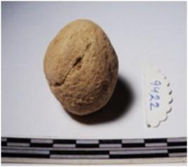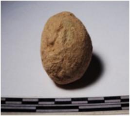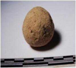 | Description / विवरण | A terracotta sling ball round in shape of smooth surface. |