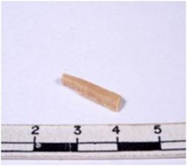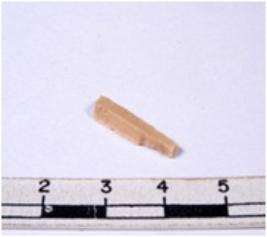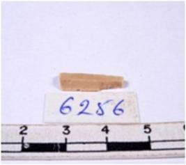 | Description / विवरण | A fragment of a rectangular shaped chert blade showing dorsal sides with sharp edges having smooth surface and triangular section. |