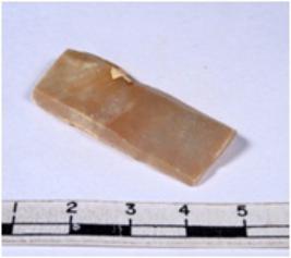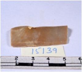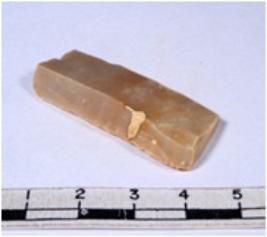 | Description / विवरण | A fragment of a rectangular shaped chert blade showing dorsal sides with sharp edges having smooth surface and triangular section. |
