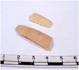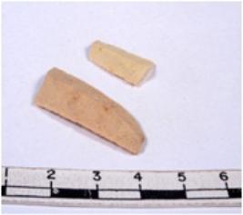 | Description / विवरण | A fragment of a rectangular shaped chert blade showing dorsal sides with sharp cutting edges having smooth surface and triangular section. |