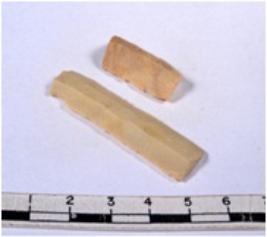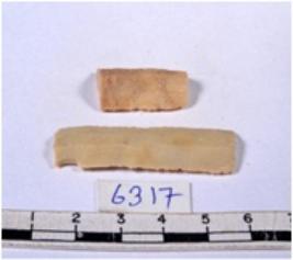 | Description / विवरण | A fragment of a rectangular shaped chert blade showing dorsal sides with sharp edges having smooth surface and triangular section. |