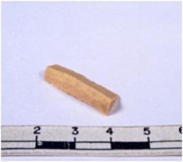 | Description / विवरण | A fragment of a rectangular shaped chert blade showing dorsal sides with sharp edges having smooth surface and triangular section. |