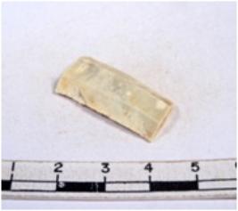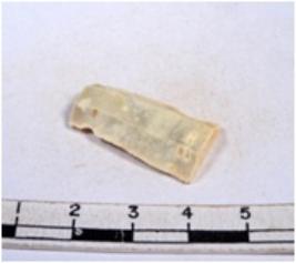 | Description / विवरण | A fragment of a rectangular shaped chert blade showing dorsal sides with sharp edges having smooth surface and triangular section. |