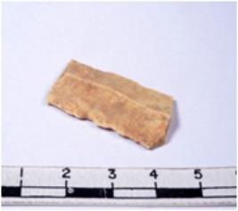 | Description / विवरण | A fragment of a rectangular shaped chert blade showing dorsal sides with sharp cutting edges having smooth surface and triangular section. |