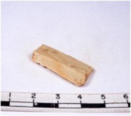 | Description / विवरण | A fragment of a rectangular shaped chert blade showing dorsal sides with sharp edges having smooth surface and triangular section. |