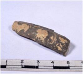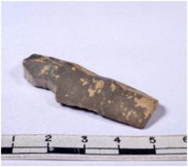 | Description / विवरण | A fragment of a rectangular shaped chert blade showing dorsal sides with sharp edges having smooth surface and triangular section. |