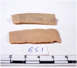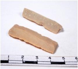 | Description / विवरण | A fragment of a rectangular shaped chert blade showing parallel sides with sharp edges having smooth surface and triangular section. |