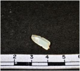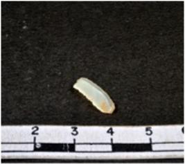 | Description / विवरण | A fragment of a rectangular shaped chalcedony blade showing dorsal sides with sharp edges having smooth surface and triangular section. |